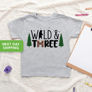3rd Birthday Boy Shirt, Third Birthday Shirt, Wild&Three Boy Shirt, Third Birthday Buffalo Plaid Boy Shirt