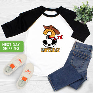 3rd Cowboy Birthday Shirt, Third Birthday Boy Shirt, Raglan Woody Birthday Shirt, Cowboy Birthday Party Shirt