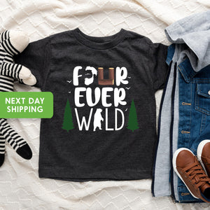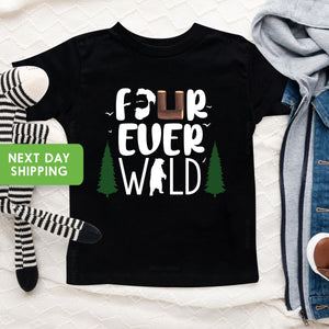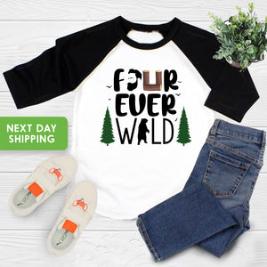 4rd Birthday Boy Shirt, Fourth Birthday Shirt, Four Ever Wild Boy Shirt, Fourth Birthday Buffalo Plaid Boy Shirt