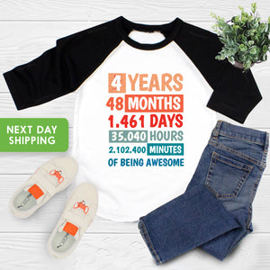 4th Birthday Shirt, 4 Years Of Being Awesome, Boys Birthday Shirt 4, For 4 Year Old Boy