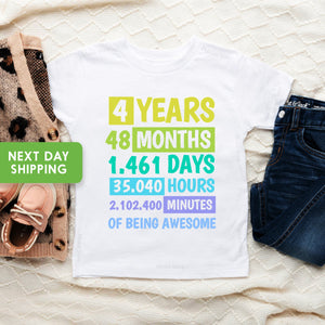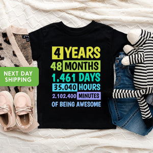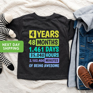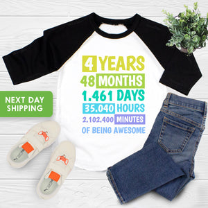 4th Birthday Shirt, Fourth Birthday Gift, 4 Years Of Being Awesome, Boys Birthday Shirt 4, For 4 Year Old Boy