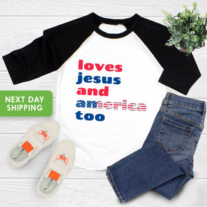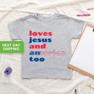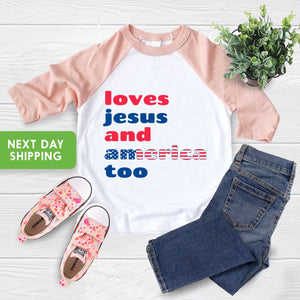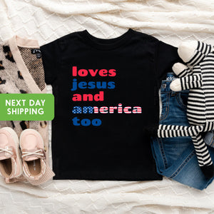 4th Of July Shirt Kids, Loves Jesus And America Too Shirt, 4th of July Religious Shirt, Girls 4th Of July Shirt, Christian Shirt