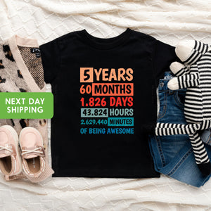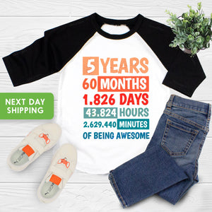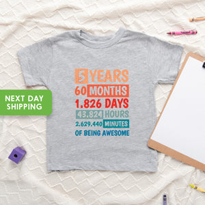 5th Birthday Shirt, 5 Years Of Being Awesome, Boys Birthday Shirt 5, For 5 Year Old Boy