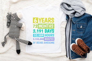 6th Birthday Shirt, Sixth Birthday Gift, 6 Years Of Being Awesome, Boys Birthday Shirt 6, For 6 Year Old Boy