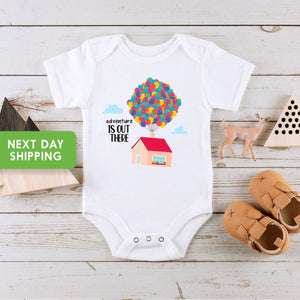 Adventure Is Out There Baby OnesieĀ®, Pregnancy Announcement, Balloon House Toddler Shirt, Baby Shower Gift, Explorer Newborn Outfit