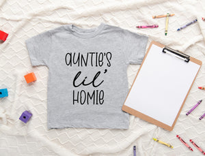 Auntie's Lil' Homie Toddler Shirt, Niece/Nephew Shirt, Cute Auntie Kids Shirt, Funny Aunt Shirts, Unisex Kids Shirt