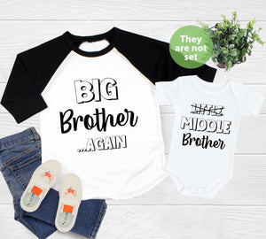 Big Brother Again Shirt, Middle Brother Shirt, Little to Middle Brother, Toddler Brother Shirts, Pregnancy Reveal, Third Sibling Reveal