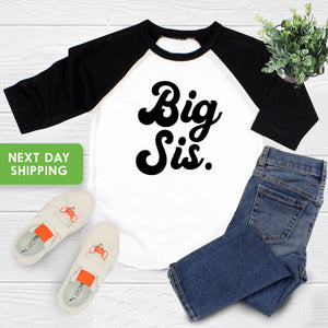 Big Sis Toddler Shirt, Vintage Big Sister Baseball Tee, Cute Retro Big Sister Kids Shirt