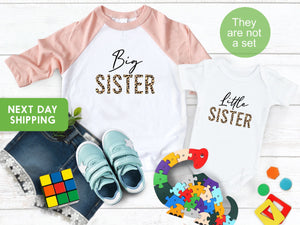 Big Sister and Little Sister Matching Outfit, Leopard Big Sis Lil Sis OnesieĀ® and Shirt, Boho Chic Baby Gift, Pregnancy Announcement