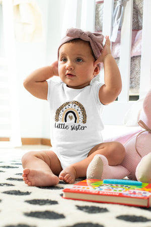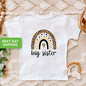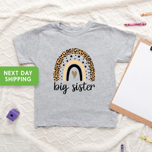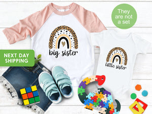 Big Sister and Little Sister Matching Outfit, Leopard Rainbow Sister OnesieĀ® and Shirt, Boho Chic Baby Gift, Pregnancy Announcement