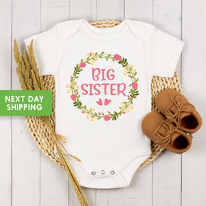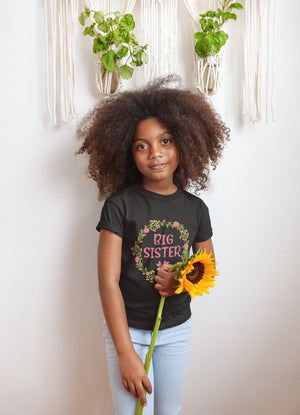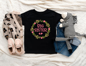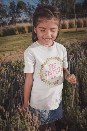 Big Sister Floral Toddler Shirt, Big Sister Raglan Shirt, Big Sister Flower Wreath Shirt, Floral Girl Shirts, Cute Toddler Shirt