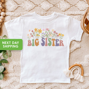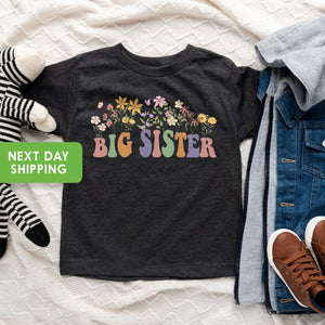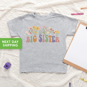 Big Sister Toddler Shirt, Boho Floral Kids Pregnancy Announcement Shirt Big Sister T Shirt, Big Sister Announcement, Retro Big Sis Shirt