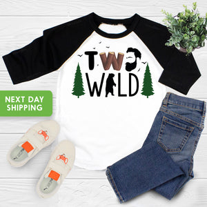 Birthday Boy Shirt 3/4 Baseball Shirt, Two Wild Boy Shirt, Second Birthday Buffalo Plaid Boy Shirt