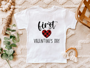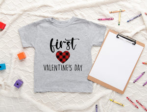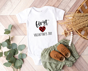 Boys First Valentine's Day OnesieĀ® Buffalo Plaid Baby Bodysuit, Baby Valentines Day OnesieĀ® 1st Valentine, First Valentines Day Tee