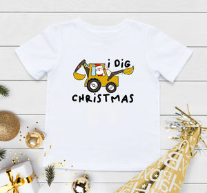 Christmas Construction Shirt, I Dig Christmas Backhoe Heavy Equipment Toddler Shirt, Funny Christmas Baby OnesieĀ®, Construction Shirt