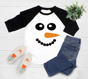 Christmas Shirt, Matching Snowman Shirts, Snowman Face Shirt, Couples Shirt, Toddler Boy/Girl Christmas Raglan Tee