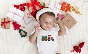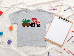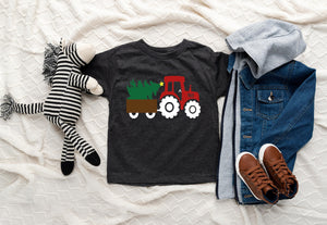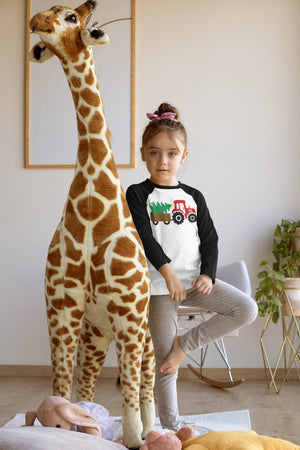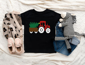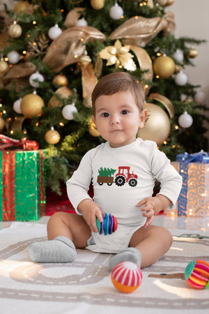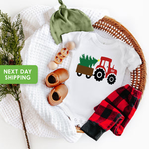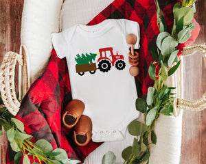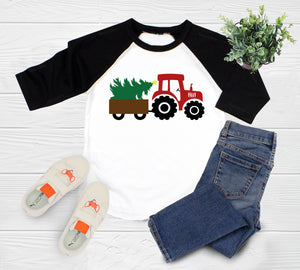 Christmas Tractor With Tree OnesieĀ® Christmas Raglan, Christmas Shirts, Christmas Red Truck
