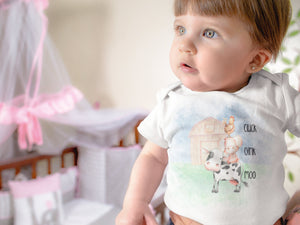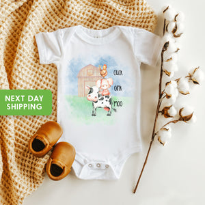Cluck Oink Moo OnesieĀ®, Farm OnesieĀ®, Cow Baby Shirt, Baby Shower Gift, Little Farmer OnesieĀ®