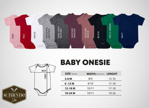 Baby Short Newborn, Baby Short 0-3 Month Onesie, Baby Short 3-6 Month Onesie, Baby Short 6-9 Month Onesie, Baby Short 12 Month Onesie, Baby Short 18 Month Onesie, Baby Short 24 Month Onesie, Baby Long Newborn Onesie, Baby Long 0-3 Month Onesie, Baby Long 3-6 Month Onesie, Baby Long 6-9 Month Onesie, Baby Long 12 Month Onesie, Baby Long 18 Month Onesie, Baby Long 24 Month Onesie, 2T Toddler, 3T Toddler, 4T Toddler, 5T Toddler, 6-8 Youth Small, 10-12 Youth Medium, 12-14 Youth Large |