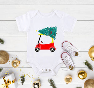 Cute Christmas Tree Kids Shirt, Red Car Christmas Shirt, Christmas Baby Gift, Holiday OnesieĀ® Cute Christmas Baby Bodysuit, Red Car Kids Tee