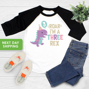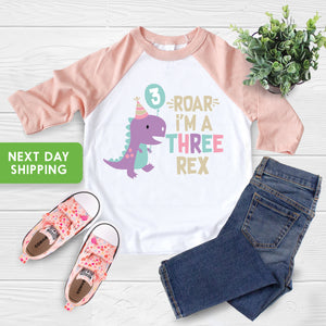 Dinosaur Birthday Raglan, Dino Birthday T-Shirt, Dinosaur Girl Shirts, Dinosaur Shirt, Girl Birthday Shirt, Girl Shirt