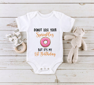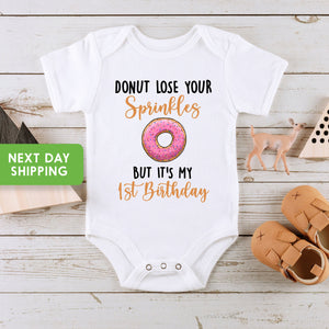 Don't Lose Your Sprinkles Birthday OnesieĀ®, Donut Birthday Bodysuit, 1st Birthday OnesieĀ®, Sweet One OnesieĀ®, Girl Bodysuit