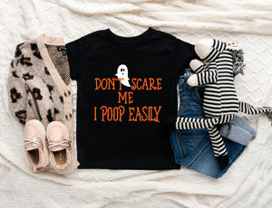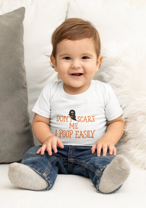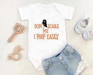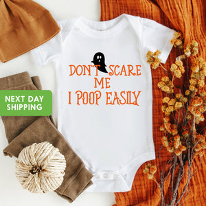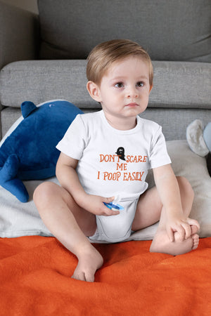 Don't Scare Me I Poop Easily Funny Baby Halloween OnesieĀ® Baby OnesieĀ® Funny Kids Holloween Shirt.