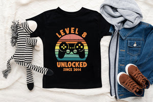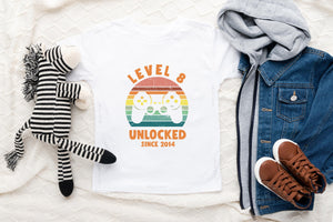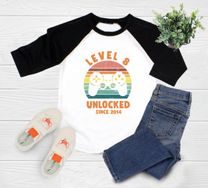 Eighth Birthday Boy Gamer Shirt, 8th Birthday Baseball Tee, Level Eight Unlocked Birthday Shirt, Eighth Birthday Video Game Boy