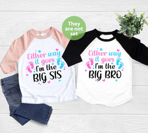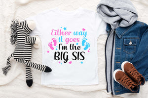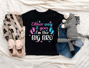 Either Way it Goes I'm The Big Bro Toddler, Big Sis Shirt, Gender Reveal Party Shirts For Kids, Pregnancy Announcement, Pink Or Blue Tshirt