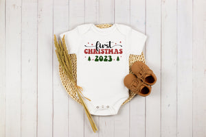 First Christmas 2023 OnesieĀ®, Cute Holiday Bodysuit, Boho Christmas Baby Bodysuit, My First Baby OnesieĀ®, Baby's First Christmas OnesieĀ®