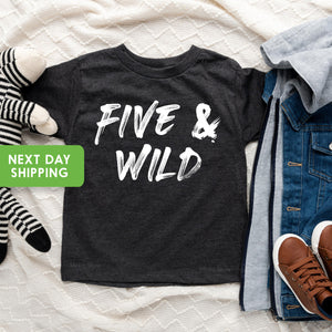 Five&Wild Birthday Shirt, Kids Shirt For 5 Year Old Birthday, Kids Fifth Birthday Gift