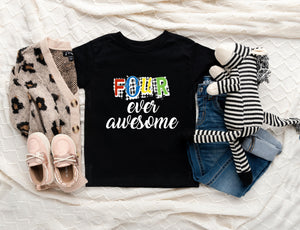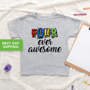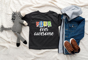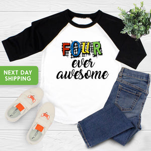 Four Ever Awesome Boy Birthday Shirt, 4th Birthday Raglan Shirt, 4 Year Old Boy Shirt, 4th Birthday Boy Shirt
