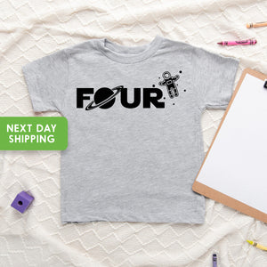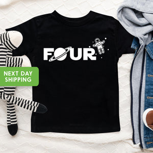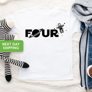Four Space Shirt, Space Birthday T-Shirt, Astronaut Party Shirt, Fourth Birthday Tee, Space Party Shirt, One Year Birthday Party Shirt