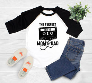 Funny Baby OnesieĀ®, Perfect Mix of Mom and Dad Baby OnesieĀ®, Funny Retro Mixtape Bodysuit, Music Bodysuit