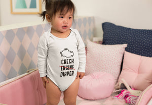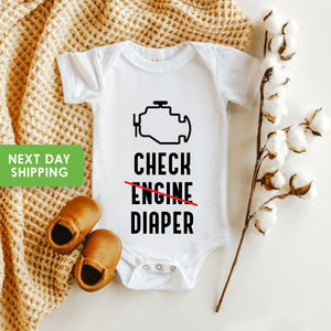 Funny Baby OnesieĀ®, Check Engine Baby OnesieĀ®, Funny Poopy Diaper Baby OnesieĀ®, Cute Mechanic Baby Bodysuit