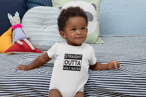Funny Baptism OnesieĀ®, Straight Outta Holy Water OnesieĀ®, Baby Shower Gift, Baptism Gift