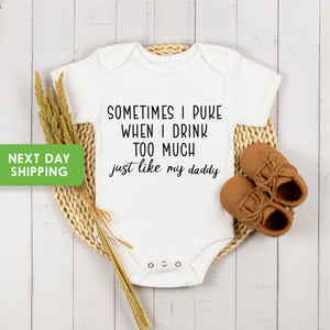 Funny Daddy OnesieĀ®, Sometimes I Puke When I Drink Too Much OnesieĀ®, Baby Shower Gift, Fathers Day OnesieĀ®, Fathers Day Gift, Newborn Gift