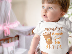 Funny Fall OnesieĀ®, Mommy's Pumpkin Spice Latte Date Baby OnesieĀ®, Cute Pumpkin OnesieĀ®, Fall Baby OnesieĀ®