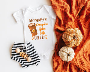 Funny Fall OnesieĀ®, Mommy's Pumpkin Spice Latte Date Baby OnesieĀ®, Cute Pumpkin OnesieĀ®,  Fall Baby OnesieĀ®