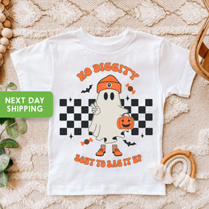 Funny Retro Halloween Kids Shirt, Cute Ghost Toddler Tee, No Diggity Bout to Bag it Up Toddler Shirt