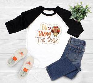 Funny Thanksgiving Kids Shirt, I'll Bring The Rolls Toddler Shirt, Thanksgiving Baby Shirt, Funny Rolls Baby Bodysuit, Fall Kids Raglan