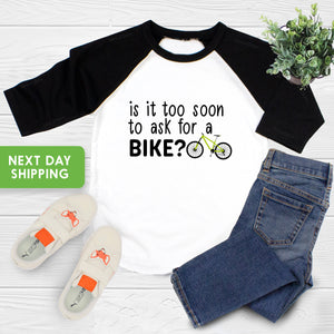 Funny Toddler Shirt, Is It Too Soon To Ask For A Bike Shirt, Bicycle Kids Gift, Bicycle Toddler Tee, Cycling Shirt