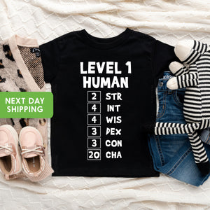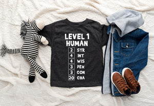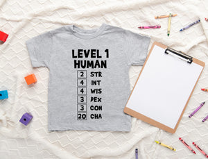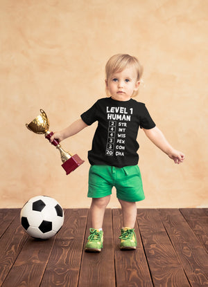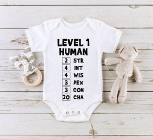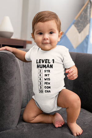 Gaming Baby OnesieĀ®, Level 1 Human, Ability Stats Featuring High Charisma