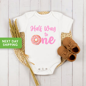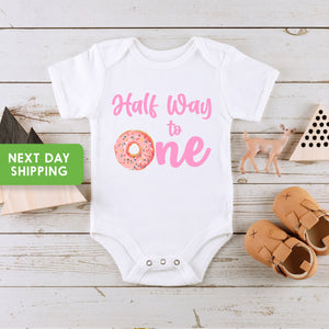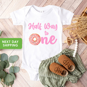 Half Way To One OnesieĀ®, Half Birthday Bodysuit,Donut Birthday OnesieĀ®,Sweet One Bodysuit, Half Birthday Gift