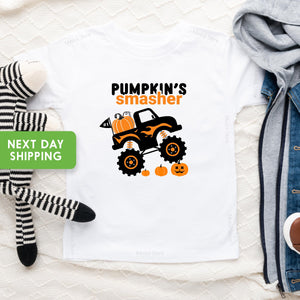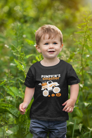 Halloween Monster Truck Toddler Shirt, Monster Truck Raglan, Funny Boys Fall Graphic Baseball Tee,Pumpkin Smasher Baby OnesieĀ®