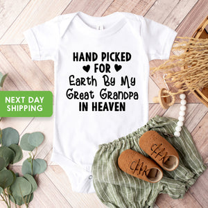 Hand Picked For Earth By My Great Grandpa In Heaven OnesieĀ®, Pregnancy Announcement, Baby Boy, Surprise, Memorial OnesieĀ®