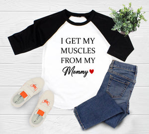 I Get My Muscles From My Mommy OnesieĀ®, Cute Baby Bodysuit, Valentine's Day Baby OnesieĀ®, Customized Baby, Work Out Funny Baby Shirt
