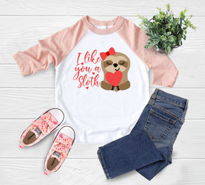 I Like You A Sloth OnesieĀ®, Cute Valentines Day OnesieĀ®, Valentines Sloth Kids Shirt
