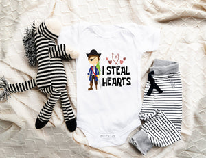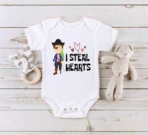 I Steal Hearts Onesie®And Toddler Shirt, Cute Pirate Baby Clothes, Valentines Hearts Pirate Baby Bodysuit