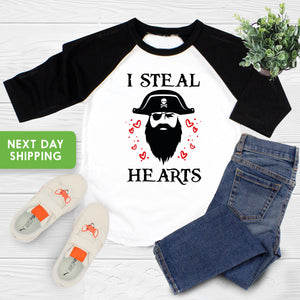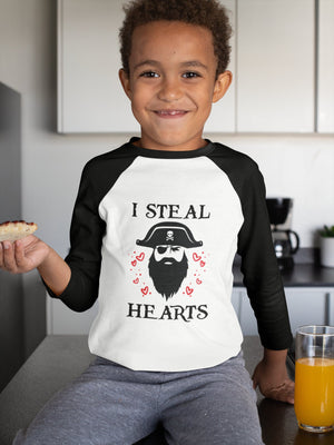 I Steal Hearts Toddler Baseball Tee, Cute Valentines Day Toddler Shirt, Valentines Pirate Toddler Shirt